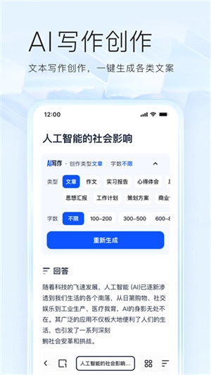 夸克AI搜索具备多重实用功能:无论是学习知识、解决工作与生活中的各类问题,还是搜索资料,它都能智能整合全网信息,生成高质量的精准回答;同时支持一键创作不同类型的文章,还能高效处理文档、网页、视频等内容,快速提炼核心要点。