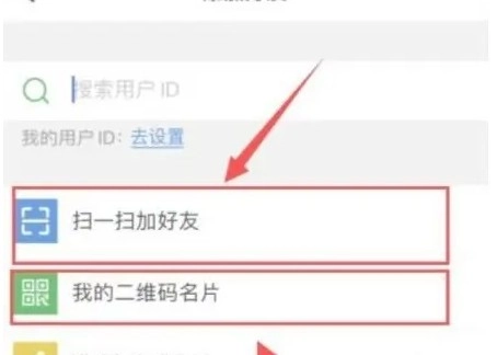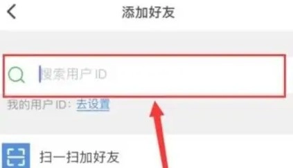 3、在顶部搜索栏里搜索“用户ID”即可加好友了。