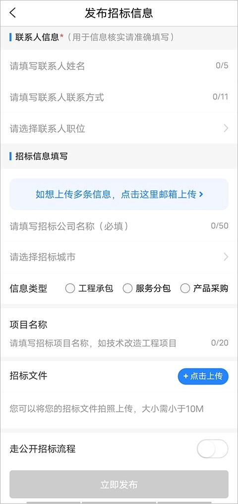 3、最后输入招标信息,点击“立即发布”即可。