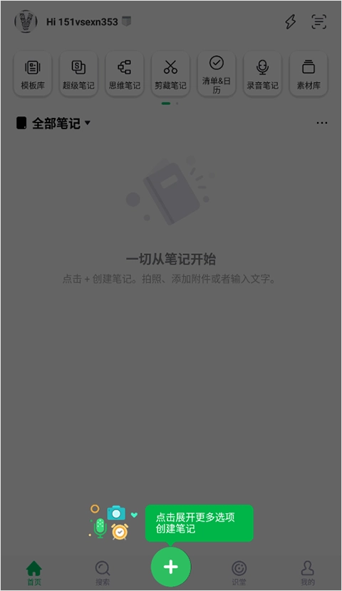 - 用“素材库”中的素材快速创建笔记,丰富笔记内容