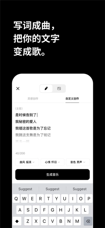 4、该应用支持您输入关键词或旋律片段,系统会依据这些信息快速生成与之对应的旋律。