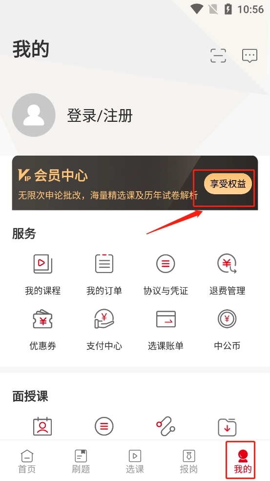 1、打开中公教育后需先登录账号,因为只有登录账号才能进行刷题操作,之后在“首页”里选择每日一练或者专项练习就可以了。