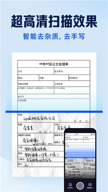 1、无论是文件、证件、发票、书籍还是绘画等各类资料,只需对着电子屏幕轻松一扫,就能通过智能美化处理,生成高清的PDF扫描件。