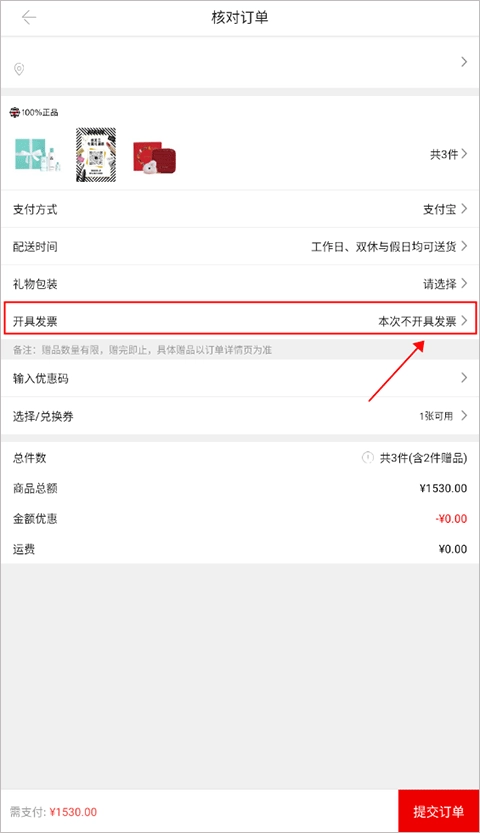 1、第一步是打开丝芙兰应用,进入商品详情页面后,找到并点击“开具发票”选项