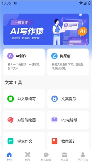 软件提供了智能化的续写,绘画,提取文案以及伪原创等等功能,满足用户的各式各样需要