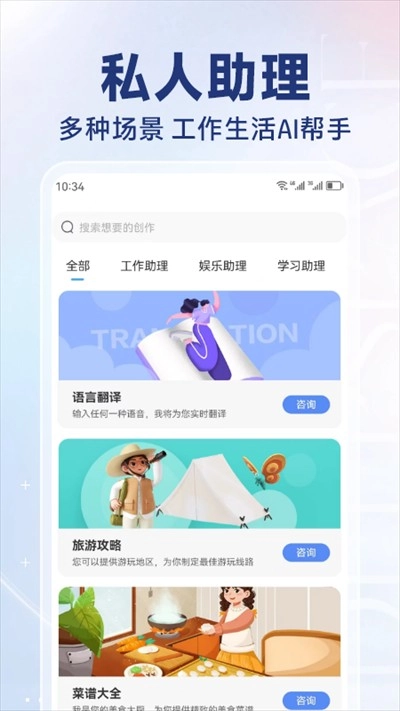 与「智能助理」开启灵动对话,尽享智能互动乐趣。不管是交流创作灵感、征询建议,还是开展轻松有趣的日常闲聊,AI助理都能为您带来个性化且充满智慧的对话体验。