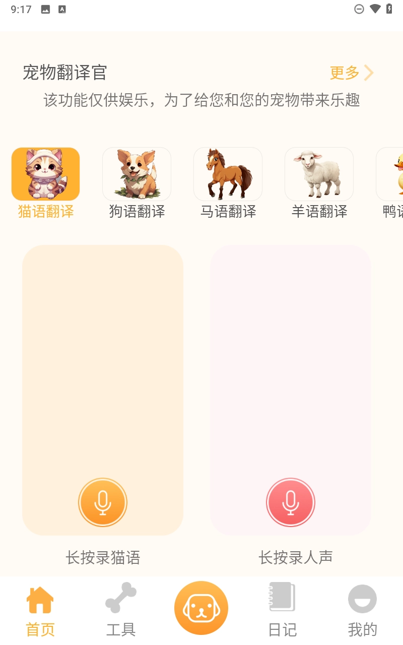 3、长按下方麦克风录入猫语或人声,二者可相互转换。