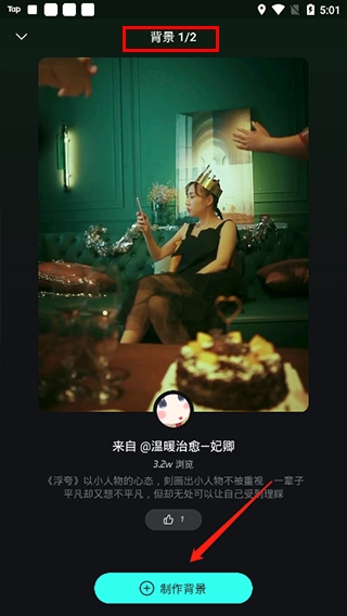 4、不仅支持自行制作背景,还能在上分看到目前该音乐供提供了2个视频背景;