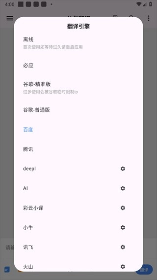 3、在翻译引擎弹窗当中点击需要切换的引擎即可。