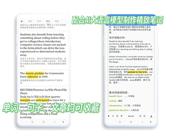 4、除了阅读与翻译功能,我们还支持富文本笔记功能。您能够针对重要语句添加个人笔记,助力您更深入地理解和记忆内容。另外,我们也提供文章听力功能,方便您反复进行听读练习,从而进一步提升您的外语听力能力。