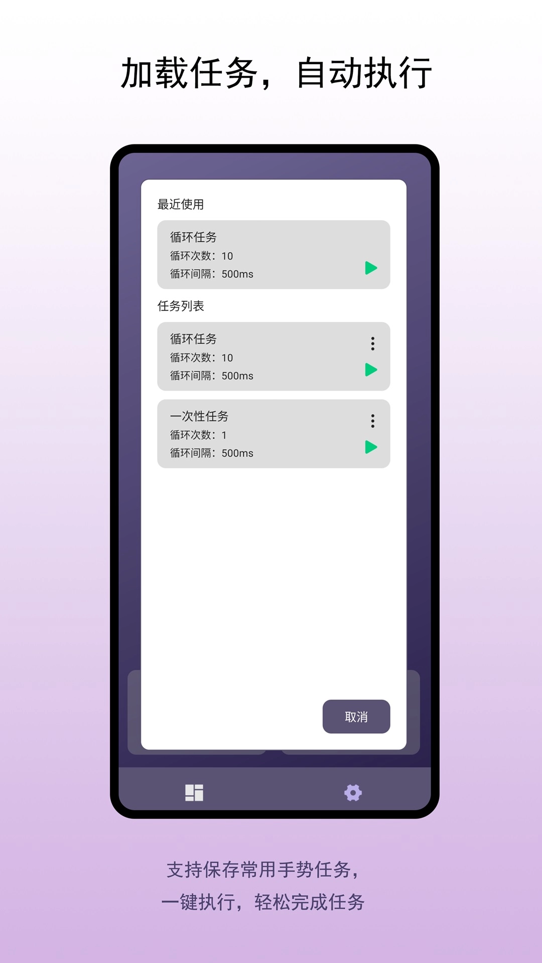 企鹅自动点击器可为用户提供手机自动点击服务,用户能通过录制手势打造专属点击模板,助力更顺畅地完成每一次自动点击操作;此外,软件内还配备了多种点击模式,让用户无需手动触碰屏幕,就能轻松满足各类点击需求。