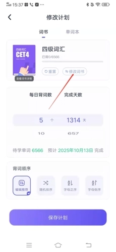 4、接着把背单词计划设置妥当,点击保存按钮,就能顺利完成换书操作了。