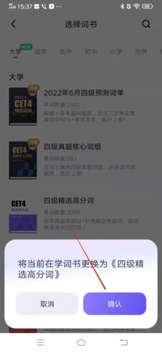 3、在这里我们可以选择自己需要的词书,选择完毕后点击确认;