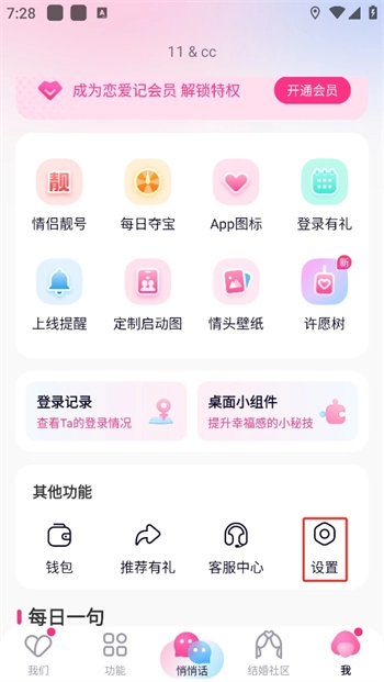 在恋爱记里,你们能够一起记录每天的恋爱日常,还能进行蜜语聊天互动。