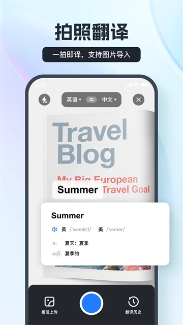通过拍摄相关文本、海报、路标等内容,一键翻译出您想要的语言;