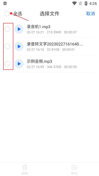 3、全选或者选择多个文件即可一键删除