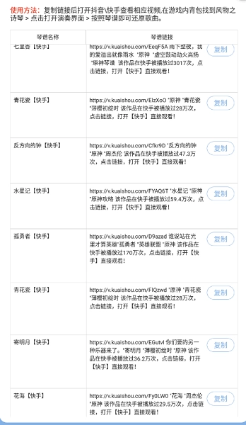 3.视频教程链接:应用提供原神琴谱相关的视频教程链接,便于用户更直观地学习弹奏技巧,助力提升演奏水平。