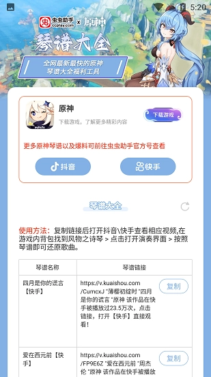 虫虫助手原神琴谱大全是一款面向《原神》玩家的手机应用,主要功能是提供琴谱资源,致力于分享当下最新、最热门的原神琴谱,并且会不断更新内容,力求在全网范围内保持最快的更新速度。