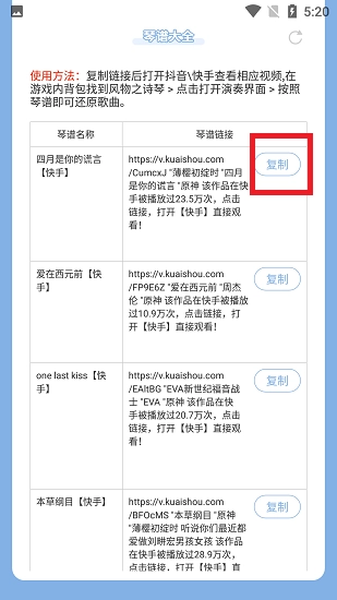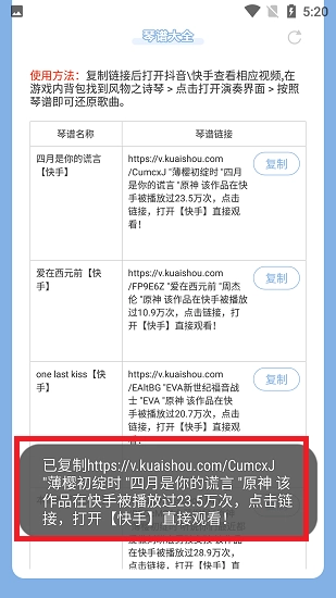 2.便于查看与复制:用户能够及时获取最新的琴谱资源,在主页上只需简单点击就能复制链接,无论是分享给其他玩家还是留存备用都十分便捷。