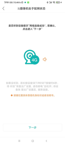 听见设备语音提示等待连接后点击下一步;