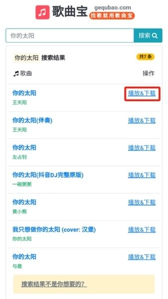 3、在这里可以直接在线预览收听当前歌曲,看看是不是自己想要找寻的歌曲;