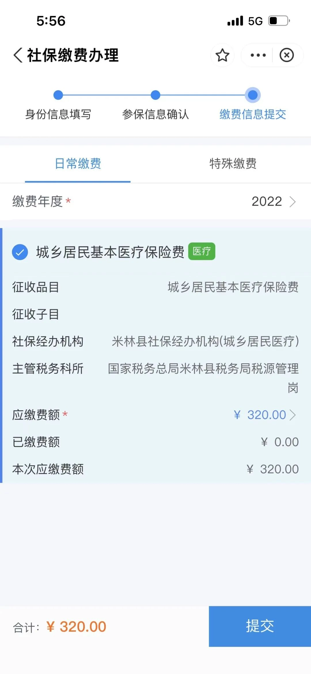 5.核查参保信息,选定缴费档次,确认信息准确无误后,点击“提交”按钮。