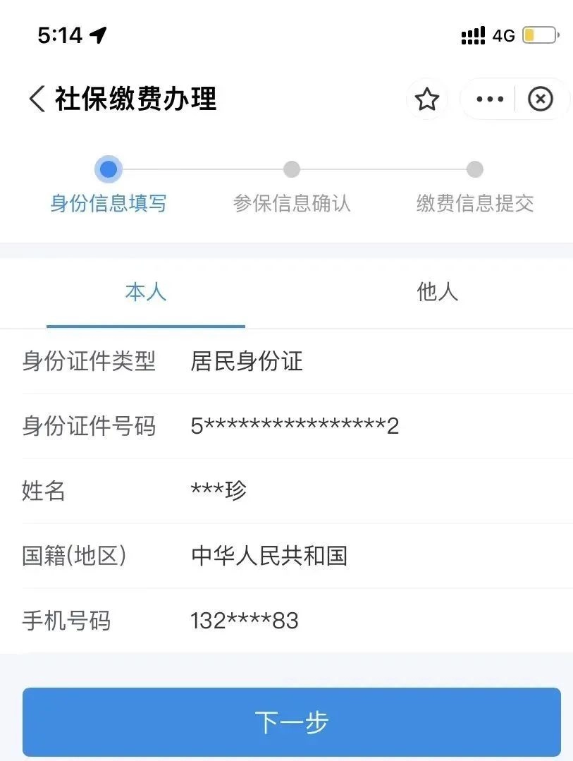 4.本人缴纳直接授权用户信息,若为他人代缴,手动输入被缴人证件编号和姓名