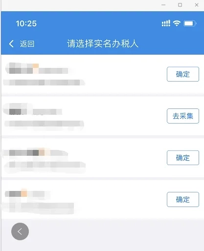 4.选择对应的人员身份,若该人员身份尚未完成实名采集,需先开展实名采集操作,此时会显示“去采集”按钮,点击该按钮即可进入实名信息采集流程。该流程需调用支付宝,且需确保支付宝当前登录的信息与待采集人员的信息保持一致。