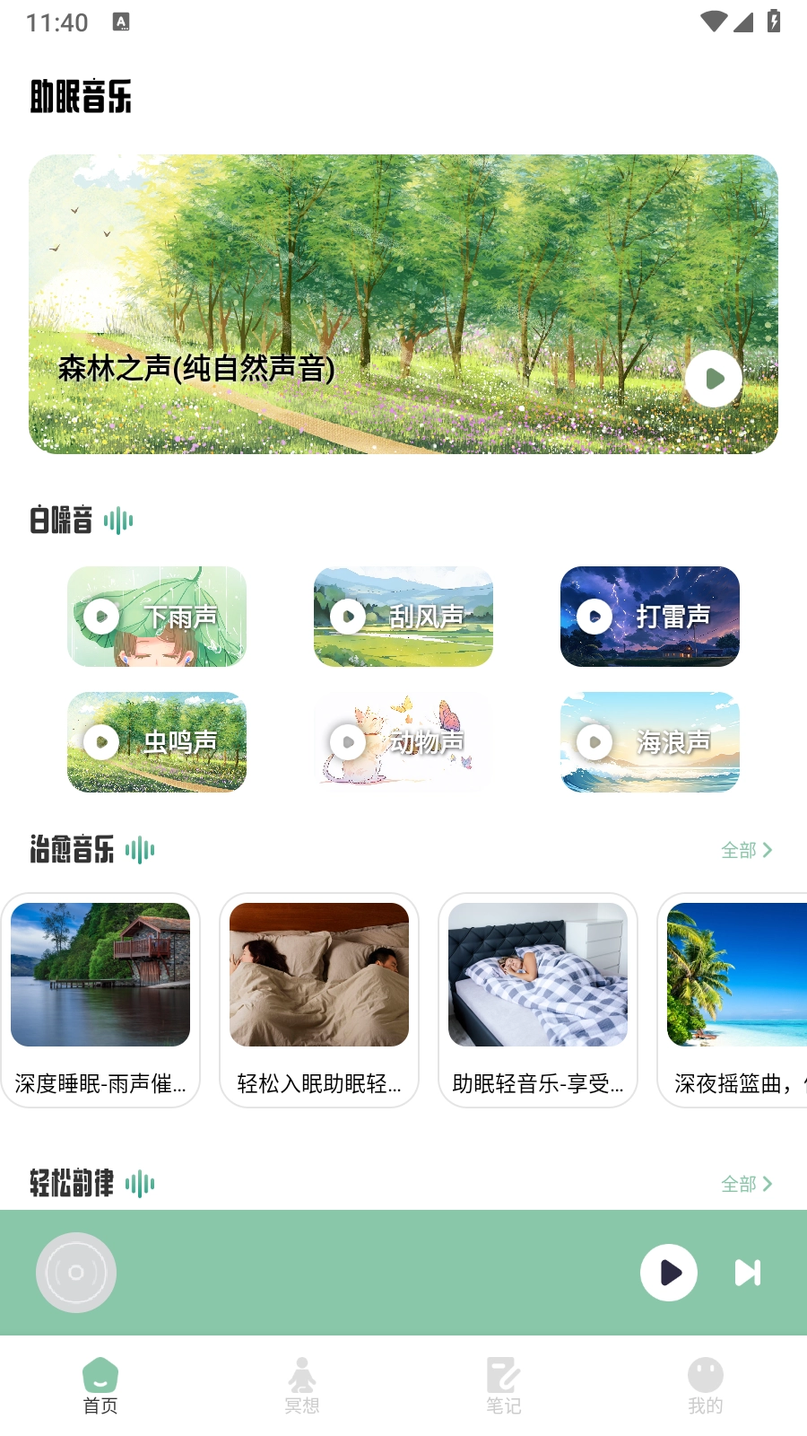 2.在App的主界面中,能看到自然白噪音、轻音乐等各类助眠音频的分类,你可以从中挑选适合自己的助眠音频。