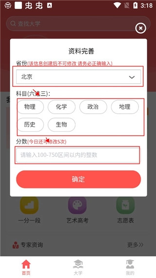 3、软件主页面设有找大学、查专业、一分一段等功能板块。