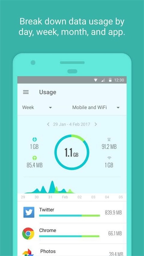 1、可在通知栏中查看GlassWire的速度计,从而快速了解实时数据使用情况