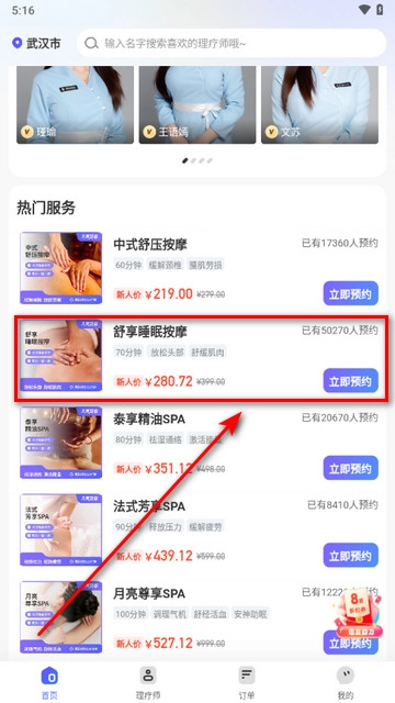 2、进入软件后,里面有很多按摩项目,你可以点击自己需要的服务。