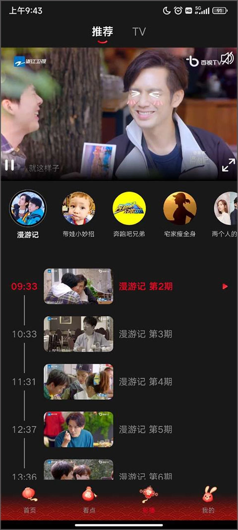 2、进入轮播页面后,点击顶部的“TV”位置。
