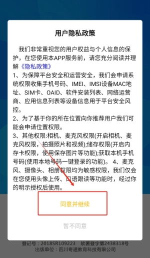 1、轻点同意按钮即可顺利进入应用,开启您的学习之旅,准备迎接新知识的挑战。