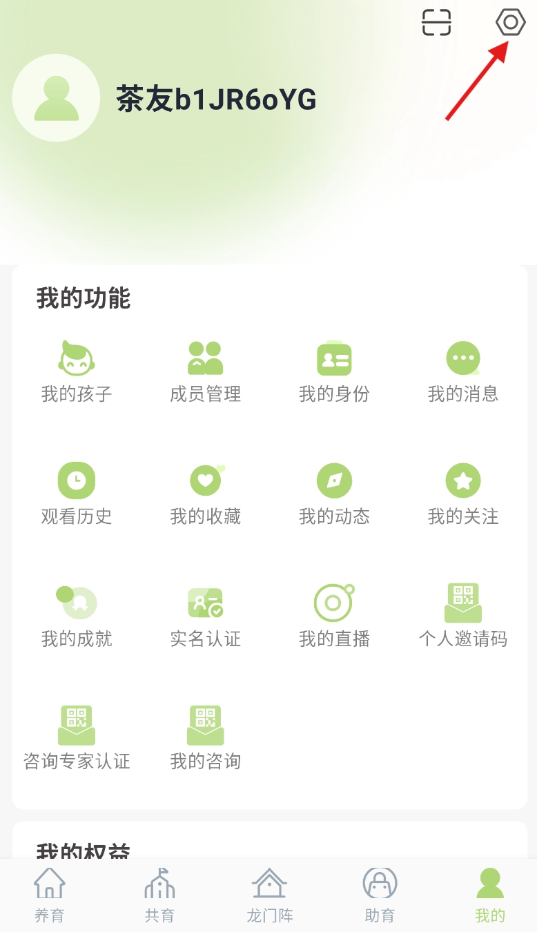 1、打开家长茶馆应用,在主界面底部找到“我的”选项,点击该选项进入个人中心页面。
