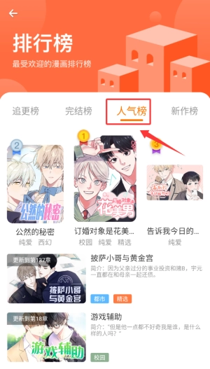 1、登录浮云漫画平台后,在首页找到并点击“人气榜单”的入口,即可查看当下热门漫画的排名情况。