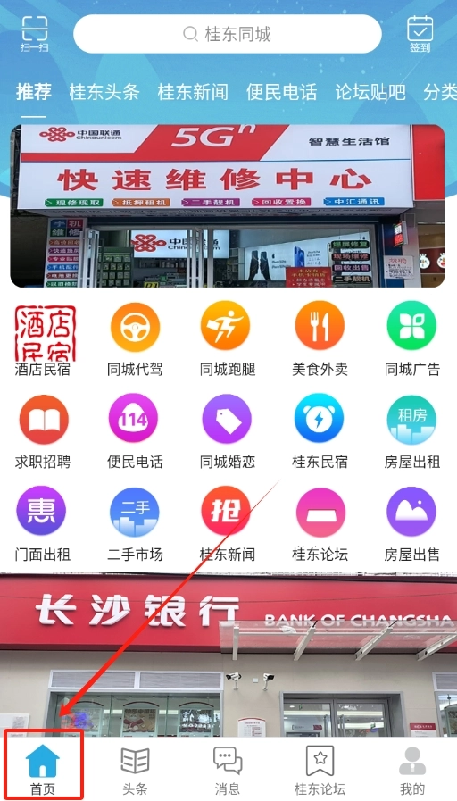 1、安装桂东同城,打开后浏览首页的本地分类信息和热门活动。