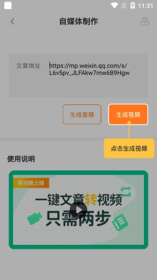 2、输入地址后点击生成视频即可。