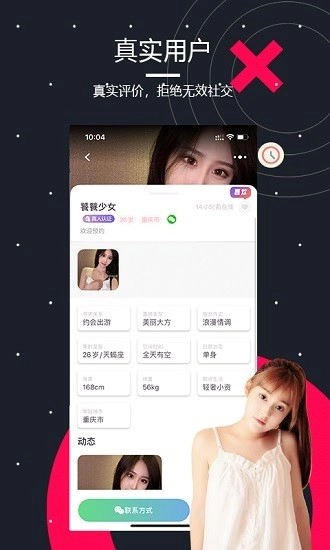 我们会优先为你匹配同城的优质用户,通过实时显示的距离信息和对方最近的登录时间,助力你更快找到合适的人脱单。