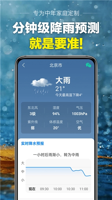 【短时降水】可对您所在位置未来2小时内每分钟的降雨变化情况,进行及时且精准的预测。