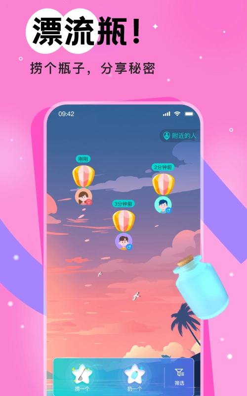 1、漂流瓶的打捞机制里融入了心理暗示相关设计,每次捞取瓶子时,都有不同概率会触发幸运提示,这为陌生人之间的邂逅增添了几分仪式感。