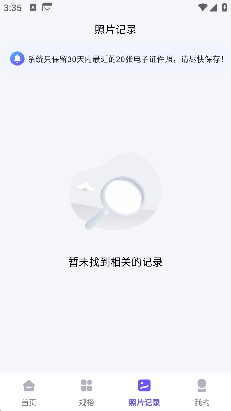 在照片记录页面中,可查询近20天内的最近20张电子证件照信息。
