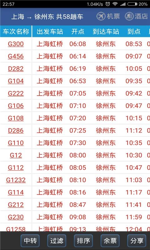 4、可依据自身需求对所有车次进行排序,以便更便捷地查找。