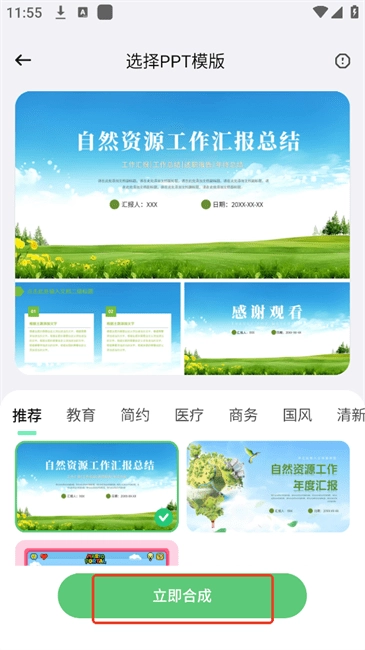 3.待PPT大纲生成完毕且确认内容无误后,点击“选择PPT模板合成”按钮