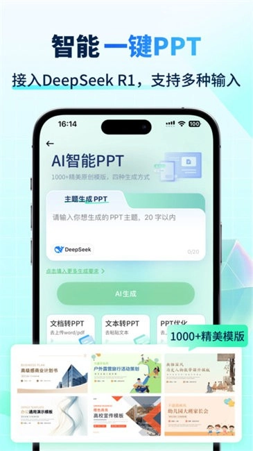 【AIPPT】拥有1000+精美模板且持续更新,支持通过输入主题生成PPT、上传文档转换PPT、上传PPT进行优化等多种方式,助力用户一键打造优质PPT。