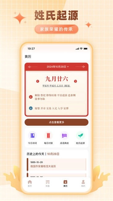 2、诗词页面为用户带来丰富的文化滋养。平台每日更新今日诗词、成语典故等内容,用户在领略诗词韵味的同时,能深入感受中华文化的深厚底蕴。姓氏起源功能可帮助用户追溯自身姓氏的历史脉络,进一步增强家族归属感。
