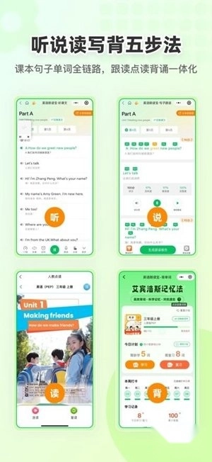 3、通过课文音视频同步跟读训练,有效提升学生的听说读写综合英语能力。