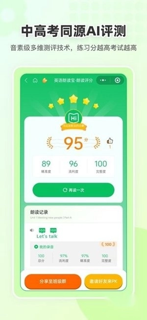 2、智能发音测评系统能够精准剖析学习者的语调、音准、连读、重音等发音要点,助力其达成地道发音。