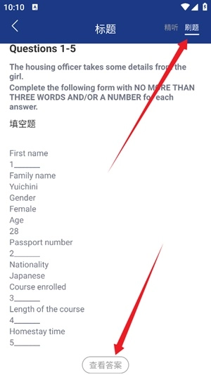 3、挑选任一训练模块后,能查看多样的真题题库与优质文章,点击右侧耳机图标就能启动听力训练。