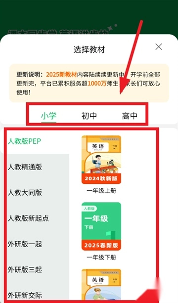 2、在教材选择界面,用户能够依据自身学习需求自主挑选适配的教材版本,选定之后系统会自动完成教材的切换。
